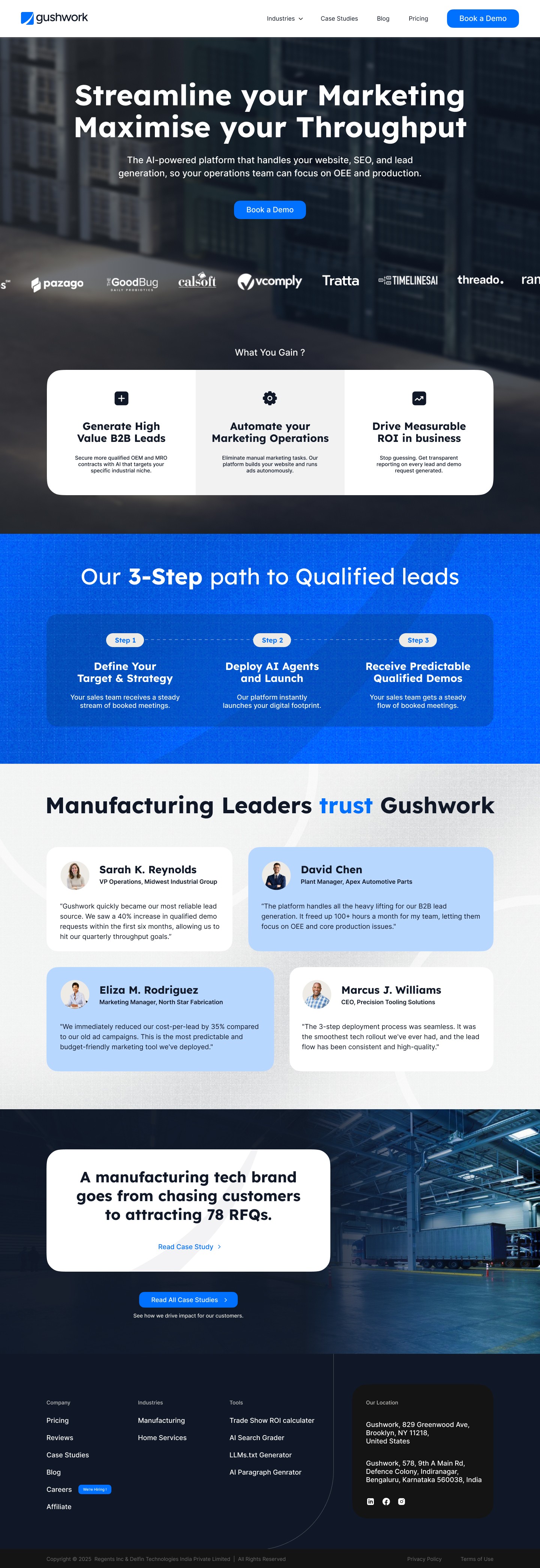 A concept-led visual redesign of the Gushwork homepage, reimagined to appeal to mid-to-large manufacturing businesses in the US.